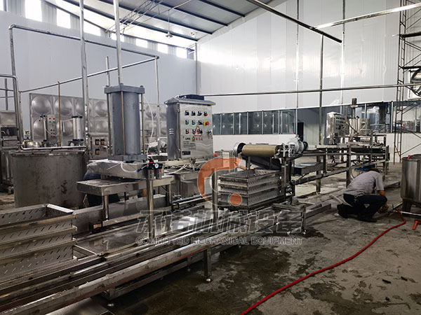 綿陽白總在當(dāng)?shù)厣婕邦I(lǐng)域特別廣泛,如礦山開采,房產(chǎn)、機械、食品等行業(yè),知名度很高,疫情后,請深思熟慮,考慮到食品行業(yè)最為長久,穩(wěn)定,因此從我廠訂購了自動化浸泡、磨漿、煮漿、豆腐皮機、豆腐機、豆干機等整套設(shè)備,以下是安裝現(xiàn)場,請檢閱: