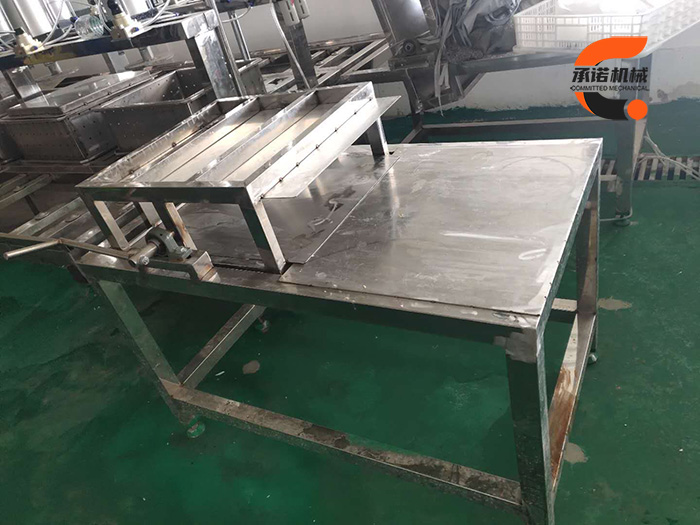 豆腐翻盤器采用優質不銹鋼打造,堅固耐用,是豆腐加工中常用的一款小設備,代替人工翻盤,簡單省事,是商丘承諾豆制品設備有限公司的產品之一。