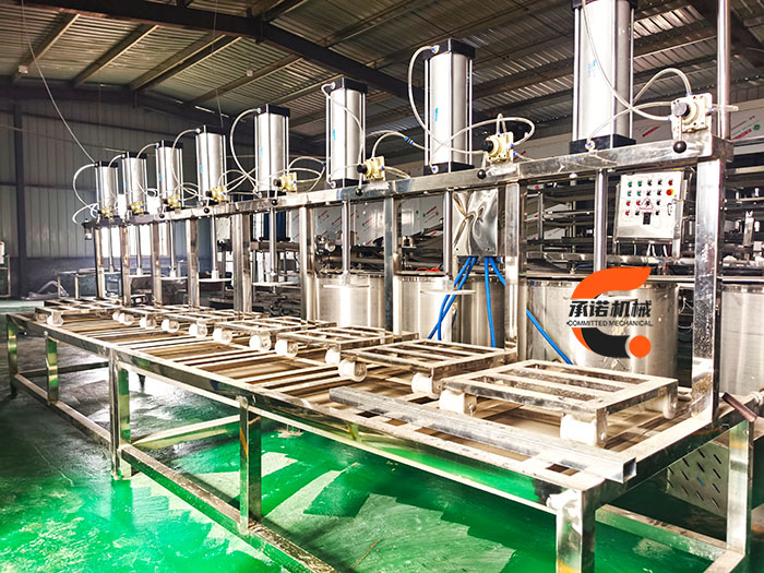 老豆腐疊壓機顧名思義就是一個壓機一次可以壓多層,多塊豆腐,此機器搭配的是疊壓筐,一次可以可以壓6-7筐,適用于場地較小,且產量相對較大的豆腐作坊,采用不銹鋼制造,購機提供豆腐加工技術培訓,安裝指導等服務!
