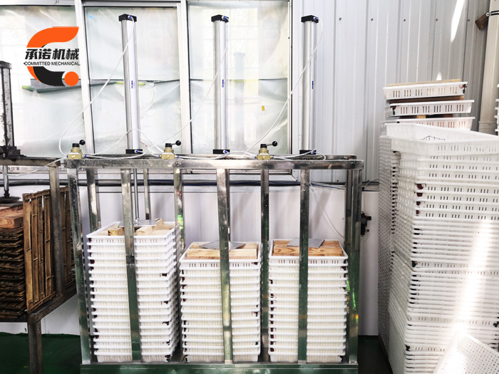 水豆腐壓機配備有不銹鋼套框,不銹鋼壓板(沖孔),搭配80*800型氣缸,采用不銹鋼制造,堅固耐用,壓力足,是商丘承諾豆腐機械設備有限公司的產品之一。
