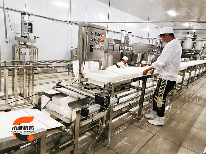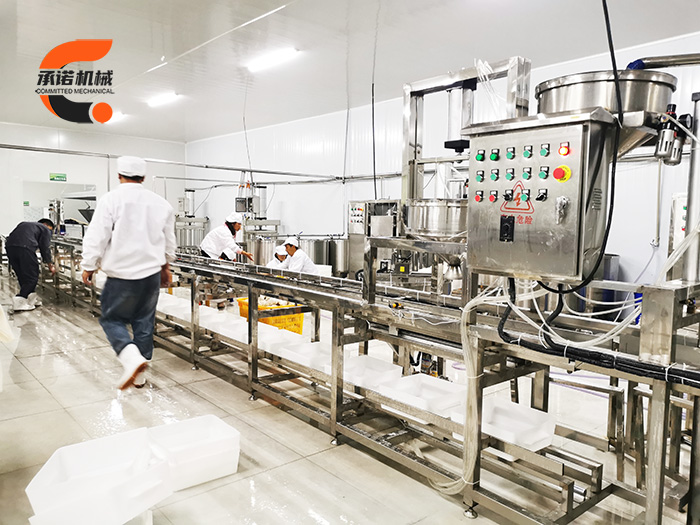 沖漿豆腐生產線由集點漿桶,儲漿桶,自動沖漿機,自動送箱機,自動翻箱機,自動回箱機于體,整個系統由PLC自動控制,自動沖漿,翻盒,豆腐盒輸送,自動化程度高,適用于生產嫩豆腐,內酯豆腐,白玉豆腐等產品。